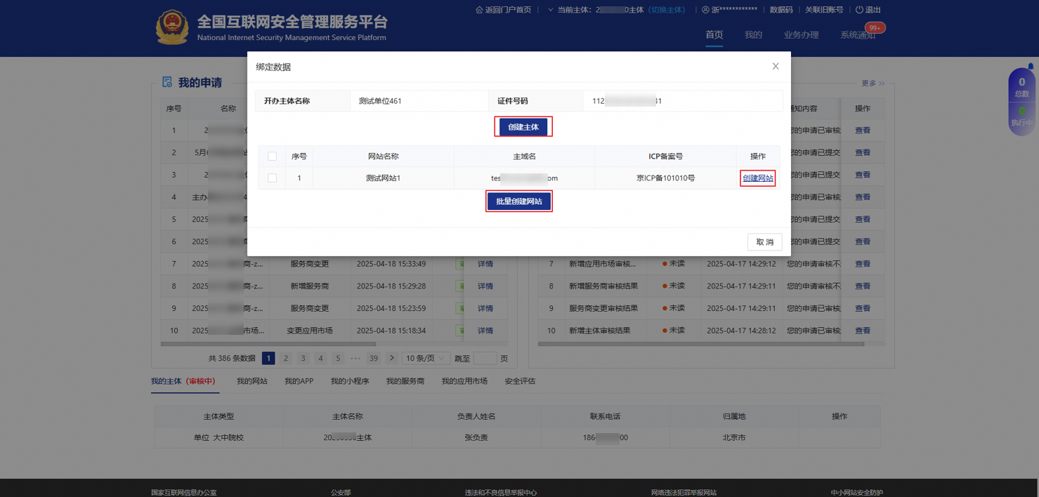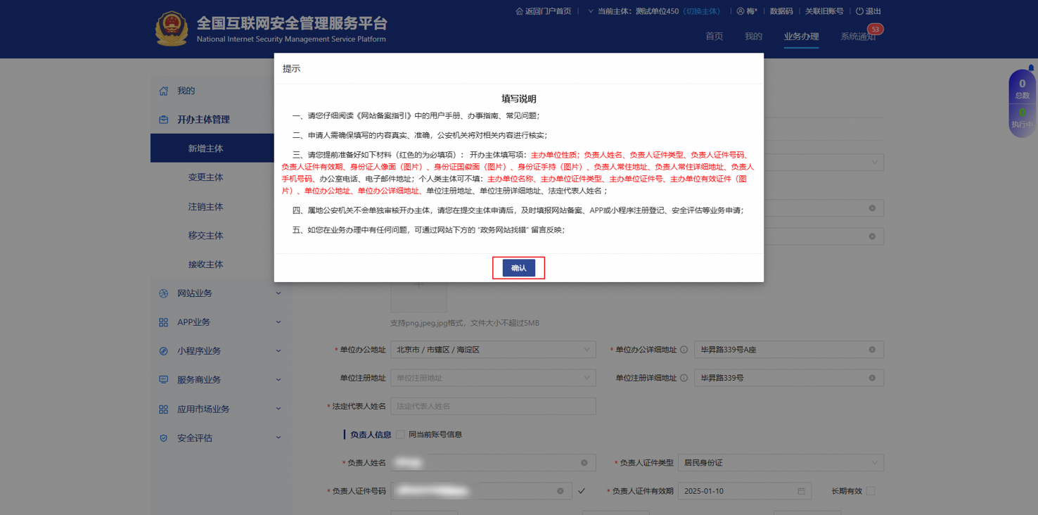 创建主体:新增备案主体信息。
